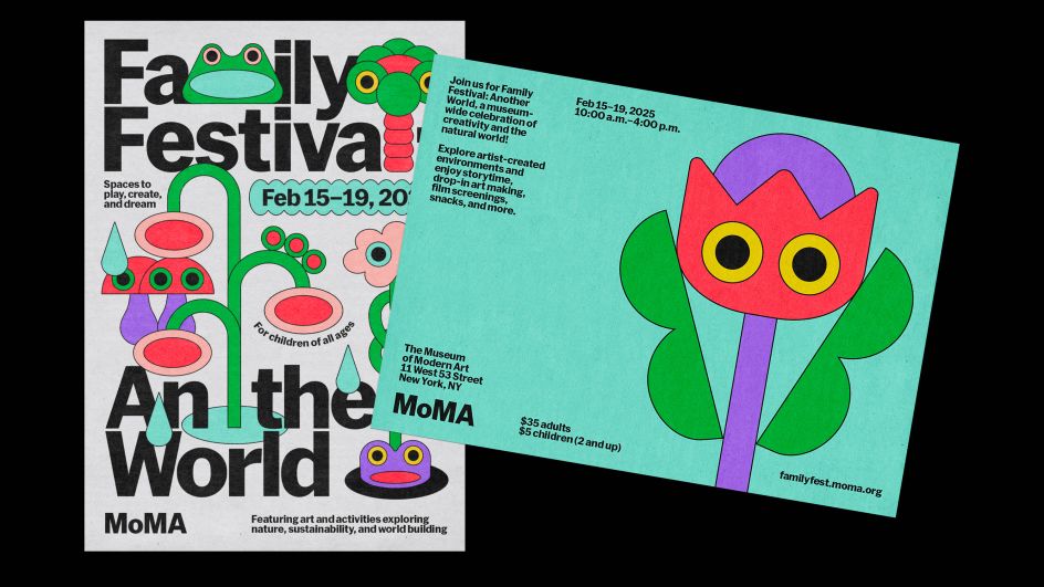 One of their recent and highly acclaimed projects is the visual identity for MoMA's first-ever family festival, Another World. Little Troop was tasked with developing a comprehensive visual identity that would extend from small items, such as café placemats, to large billboards.
